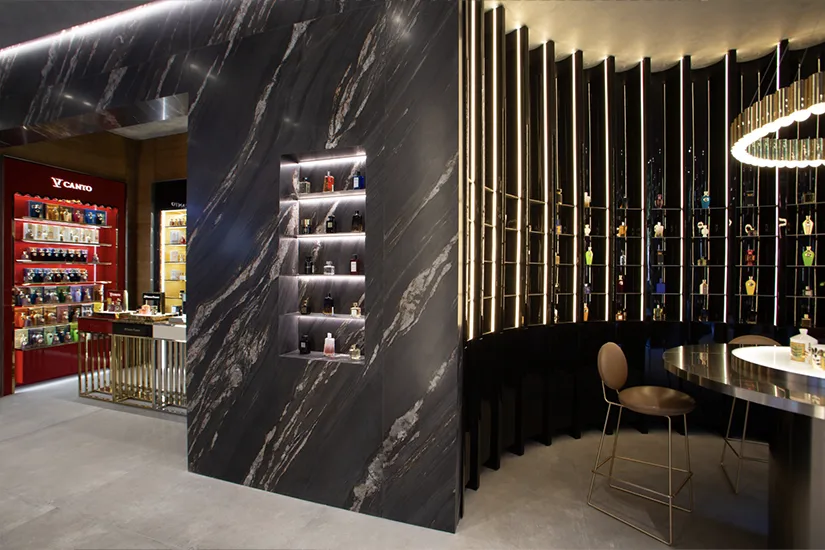 როდესაც ამ სივრცის დათვალიერებას იწყებ, ხვდები, რომ აქ არაფერია შემთხვევითი. კედლების სიმშვიდე და განათების დრამატურგია ფლორენციული ესთეტიკის გაგრძელებაა. ბუტიკის დიზაინზე იტალიურმა სტუდიამ, AREA 17-მა იზრუნა — გუნდმა, რომელიც ფუფუნებისა და სილამაზის აღქმას ისეთი გლობალური სახლებისთვის ქმნის, როგორებიცაა Loro Piana, Saint Laurent, Tiffany & Co., Prada და Moncler. მათ თბილისის გულში შეძლეს ისეთი გარემოს შექმნა, სადაც არქიტექტურა არ ჩრდილავს მთავარ გმირს — სურნელს, პირიქით, ის ჩარჩოა, რომელშიც პარფიუმერია ნამდვილ ხელოვნებად გარდაიქმნება.