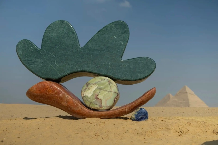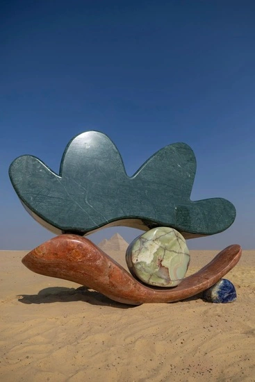 სამი სკულპტურა სამ პირამიდასთან ისეა განლაგებული, თითქოს ადგილმა მათი არსებობა წინასწარ განჭვრიტა… შედეგი კი კვლევაა იმის შესახებ, თუ როგორ შეიძლება მინერალური ფერი, გეოლოგიური დრო და თანამედროვე ფორმა დაძაბულობის გარეშე შეხვდნენ ერთმანეთს.
